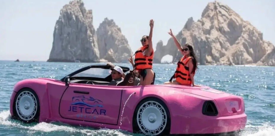 Se trata de un jet car a quien los usuarios de la red no tardaron en llamar el “carro de Barbie” aunque el llamativo vehículo lo único que comparte con la icónica muñeca es el color.