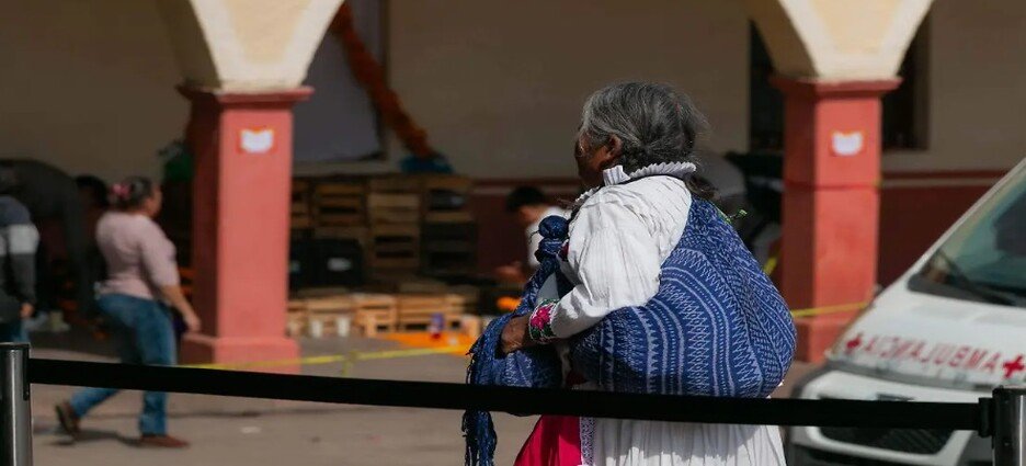 Aunque no pudo ocultarla completamente, logró disimularla parcialmente al cubrirla con su cabello y una bolsa que portaba.